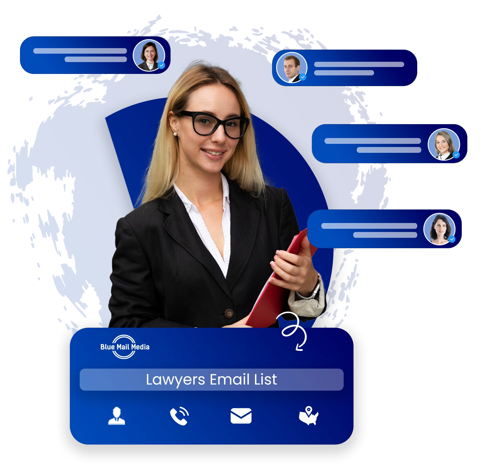 Blue Mail Media’s extensive attorney email list is the most powerful resource to market the legal tech products and associated services. We also have a huge customer base from industries like CLE providers, digital marketing agencies, law firm recruiters, etc.